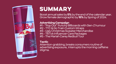 A final pitch presentation aimed to create a new, innovative product and campaign for Red Bull.