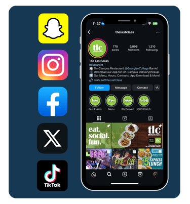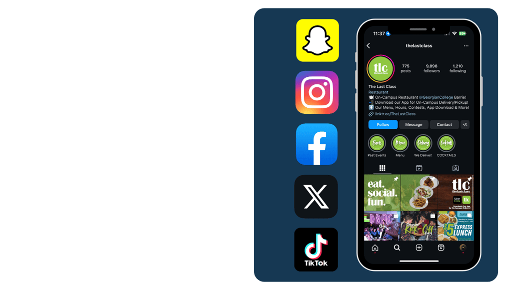 I joined the team at The Last Class during my studies in the Advertising and Marketing program at Georgian College. I was offered the opportunity to manage the restaurant's social media, in-store and campus advertising, promotions, event advertising and more!